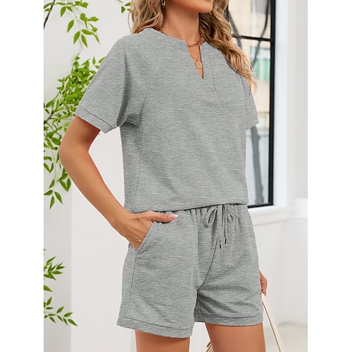 Per donna Set di biancheria in cotone Set da due pezzi Set di Pantaloncini Manica Corta Scollo a V Moda Streetwear Abbigliamento quotidiano Data Nero Bianco Verde militare Estate Vestibilità regolare