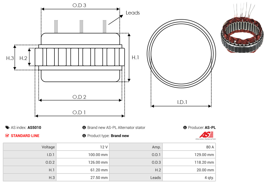 AS-PL Stator, Generator Universal 12V 180A AS3035