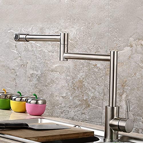 rubinetto da cucina, stile moderno in acciaio inox monocomando un foro nichel spazzolato riempitivo per pentole rubinetti da cucina retrò montati su ponte con acqua calda e fredda
