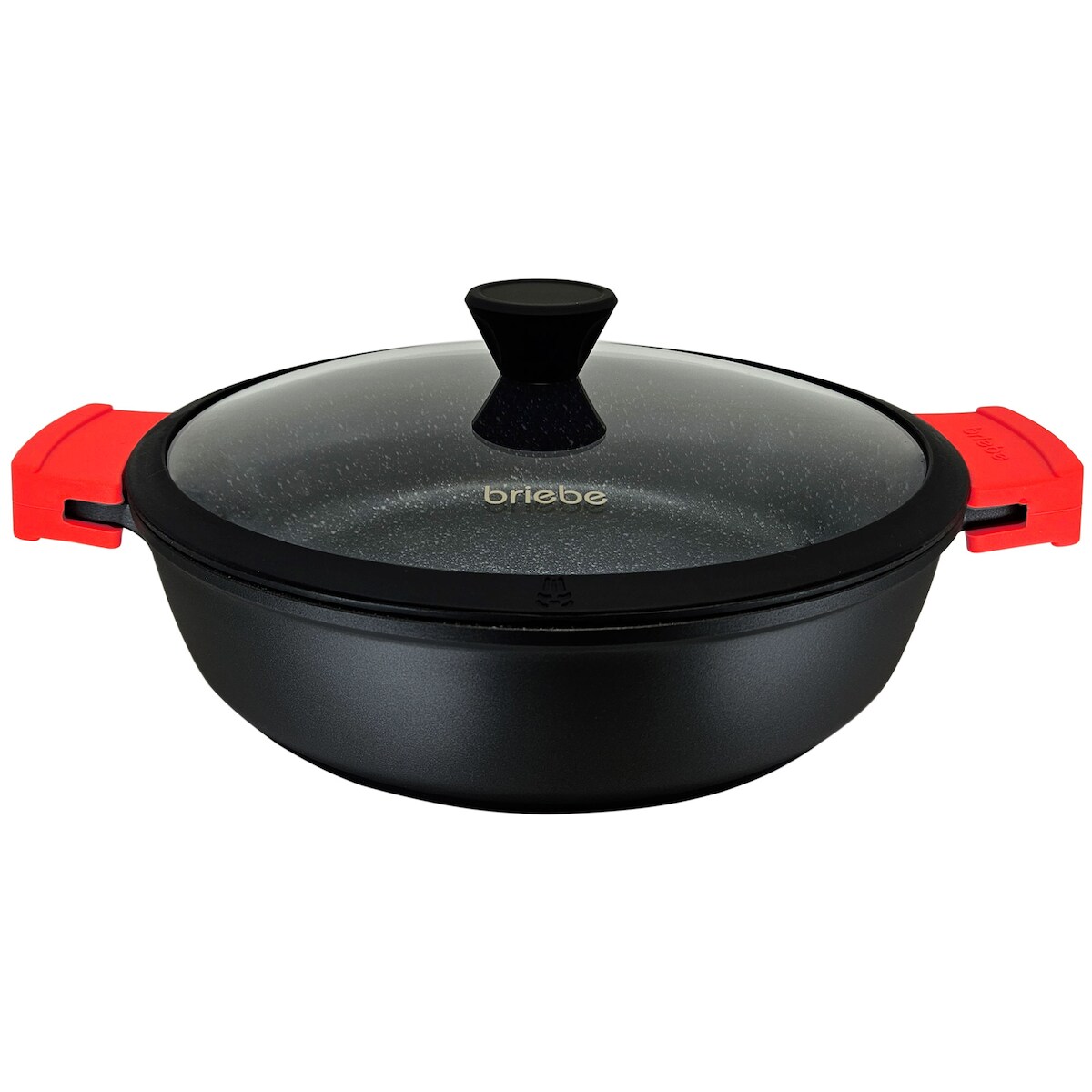 Briebe Black Titanium Servierpfanne für InduktionTitan, Topf 30cm Gussaluminium PFOA-Freie Glasdeckel, Schwarz