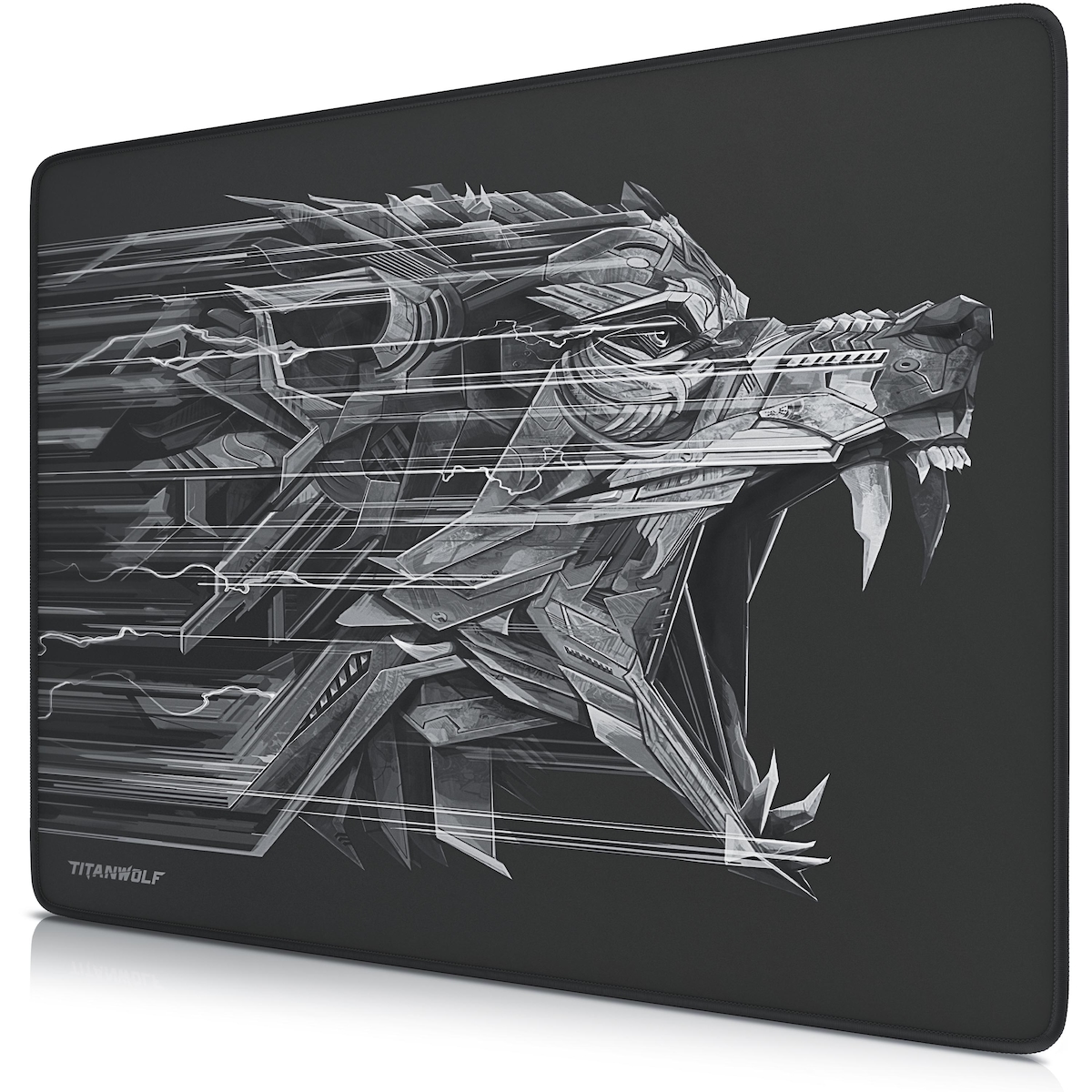 Titanwolf Gaming Mauspad XL, 440 x 350mm Mousepad mit Stoffoberfläche, Gummierte Rückseite, Wolfsmotiv