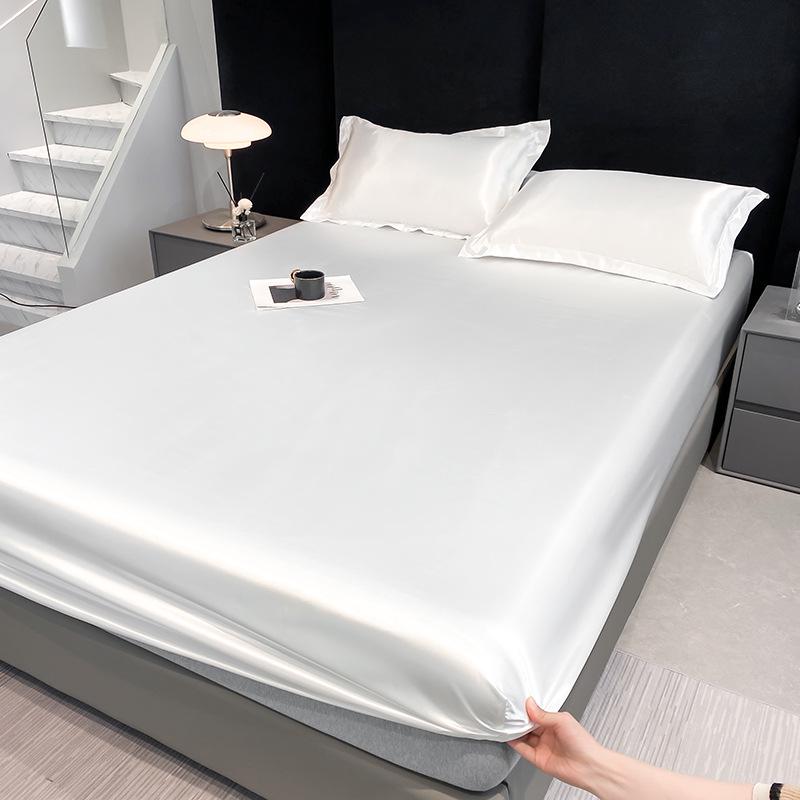 Cool Touch Imitatie Zijde Hoeslaken - Anti-Slip Satijnen Matrasbeschermer met Damast Weefsel