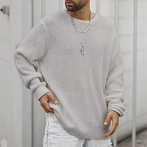 Per uomo Felpa Maglione A Coste Maglia Top Regolari Lavorato a maglia Slim Fit Semplice Girocollo Maglieria Contemporaneo Casuale Abbigliamento quotidiano Abbigliamento Tutte le stagioni Nero Bianco