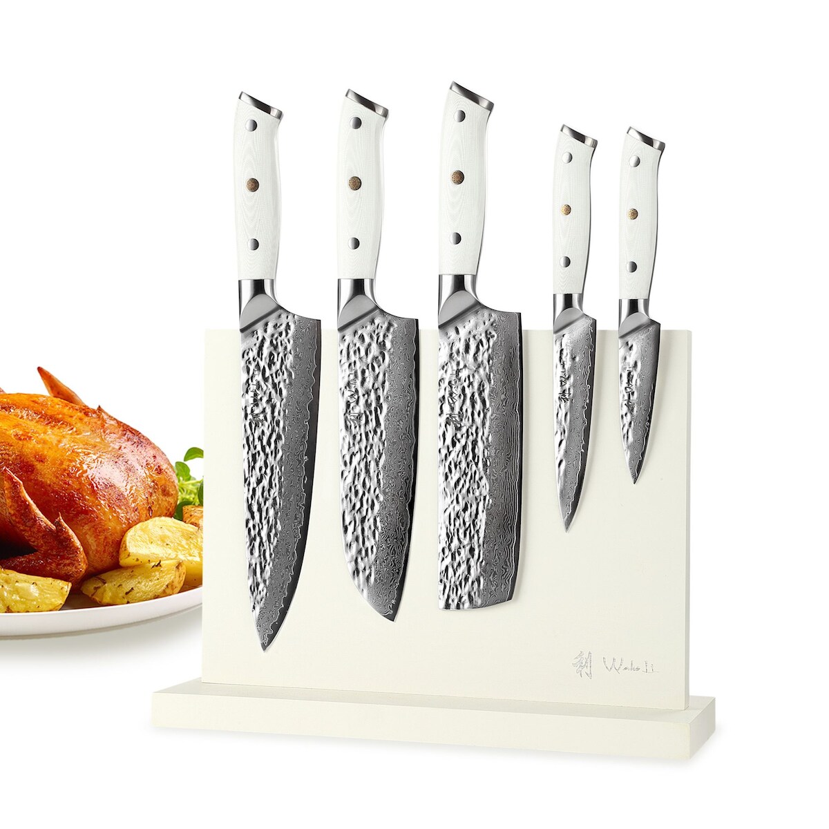 Wakoli Perle Blanche 5er Messerset mit Messerblock I Damaststahl 67 Lagen VG10 & G10-Griff (9-20 cm) | Luxuriöse Küchenmesser