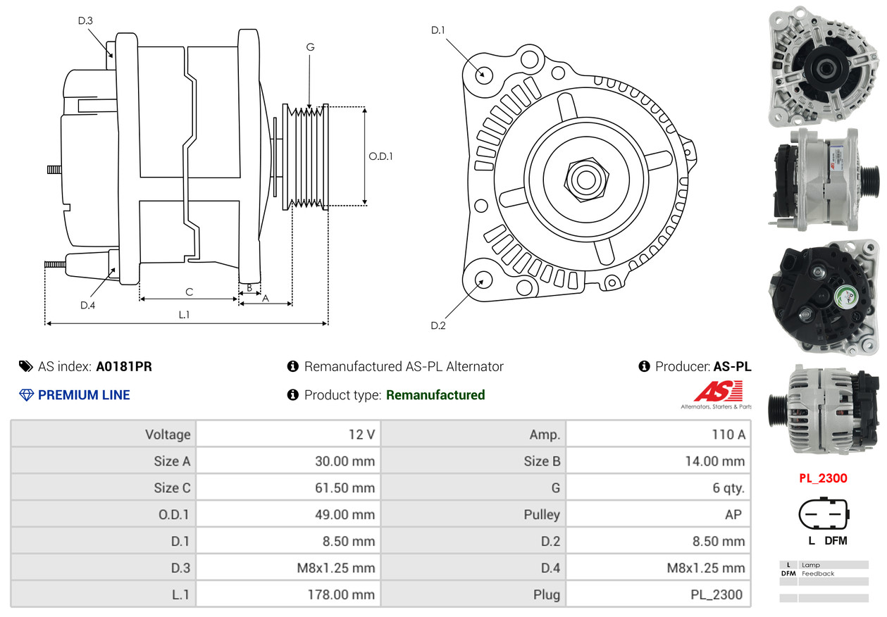 AS-PL Generator A0181PR 12V 110A für VW 3C903023BX 3C903023DX 03C903023