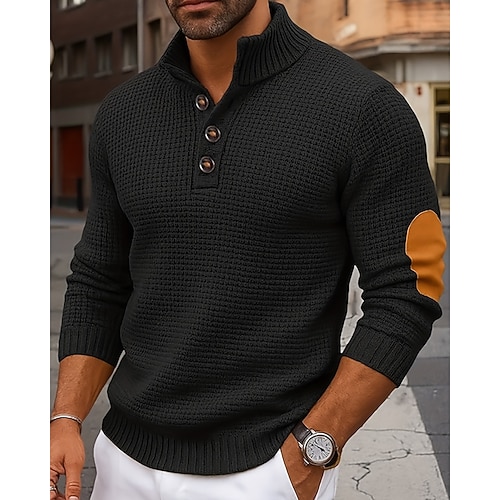Per uomo Felpa Maglione Maglieria A Coste Maglia Top Regolari Blocco di colori Girocollo Maglieria Neutro All'aperto Abbigliamento Primavera Autunno Nero Rosso S M L