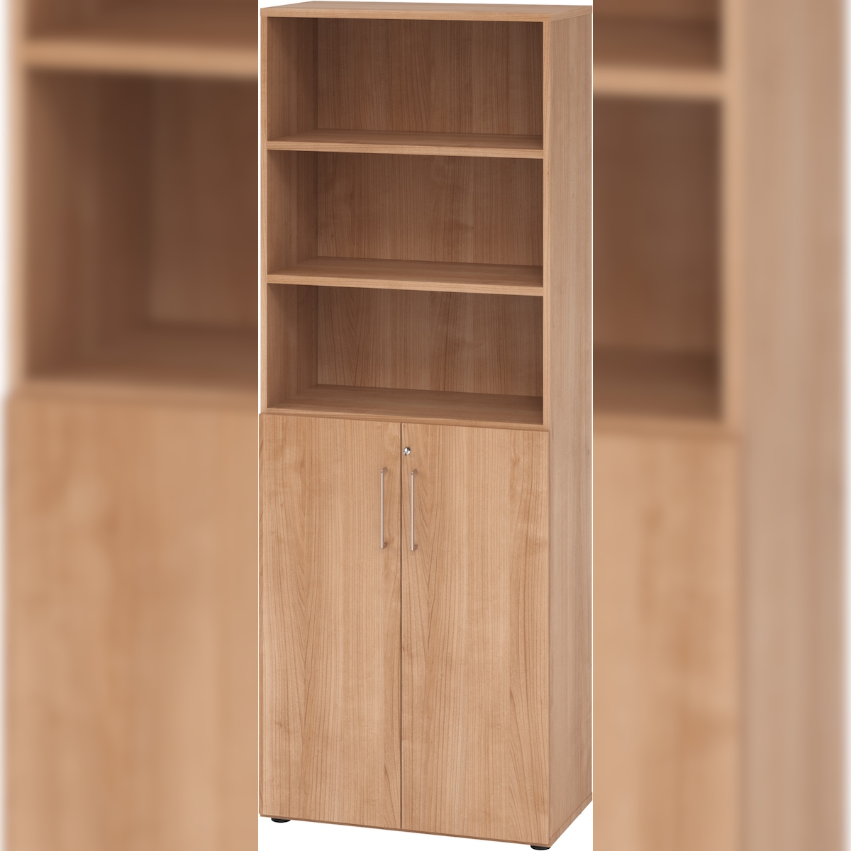 bümö Aktenregal & Schrank abschließbar, Büroschrank Regal Kombination Holz 80cm breit in Nussbaum - abschließbarer Schrank für's Büro &