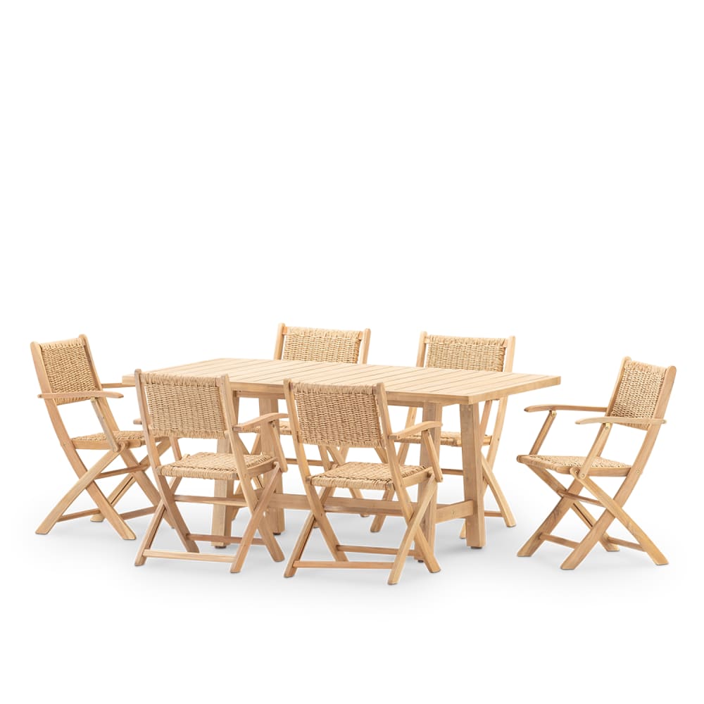 Set tavolo e sedie da giardino in rattan e legno 7 pezzi nero