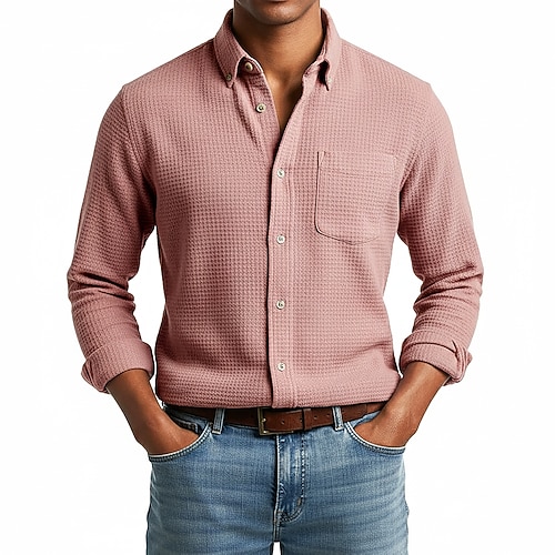 Per uomo Camicia Camicia a nido d'ape Camicia casual Camicia con colletto alla coreana Camicia con Bottoni Blu Rosa Vino Blu marino Manica Lunga Semplice Testurizzato Collo alla coreana Casuale