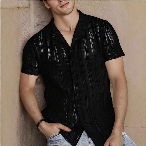 Per uomo Camicia Camicia casual Camicia con Bottoni Nero Bianco Cammello Albicocca Manica Corta Semplice Testurizzato Colletto cubano Casuale Abbigliamento casual alla moda Jacquard Abbigliamento