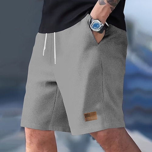 Per uomo Geometrico Blocco di colori Patchwork Pantaloncini Waffle Pantaloncini da tuta Pantaloncini casual Misura del girovita medio Moda Casual Vacanza Jogging Allenamento Testurizzato Coulisse