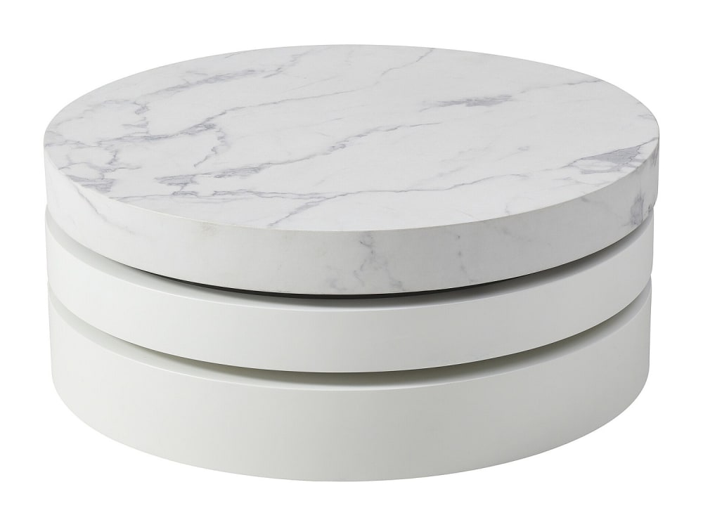Meubletmoi Table basse 120x60 cm céramique blanc marbré pieds luge