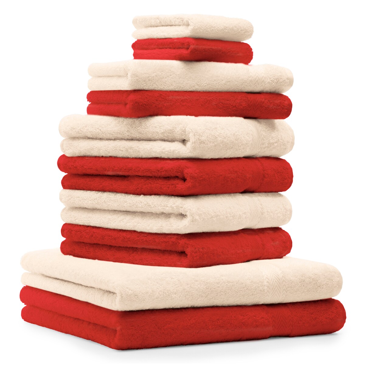 Betz 10-tlg. Handtuch-Set CLASSIC 100% Baumwolle 2 Duschtücher 4 Handtücher 2 Gästetücher 2 Seiftücher Farbe rot und beige