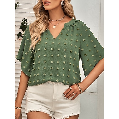 Per donna Camicia Estiva Camicia casual Blusa Tinta unica Vacanza Elegante Casual Manica 3/4 Scollo a V Top Regolari Quotidiano Spiaggia Ferie Bianco Verde Albicocca Estate Primavera