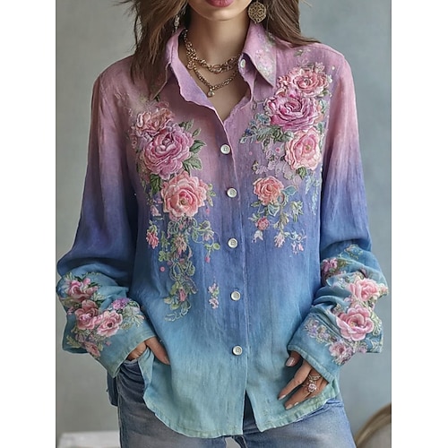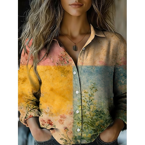 Per donna Camicia Bottoni Stampato Floreale Grafico Elegante Essenziale Moderno Manica Lunga Colletto a Camicia Top Regolari Quotidiano Lavoro Blu Nero Rosso Viola Marrone Primavera Autunno Inverno