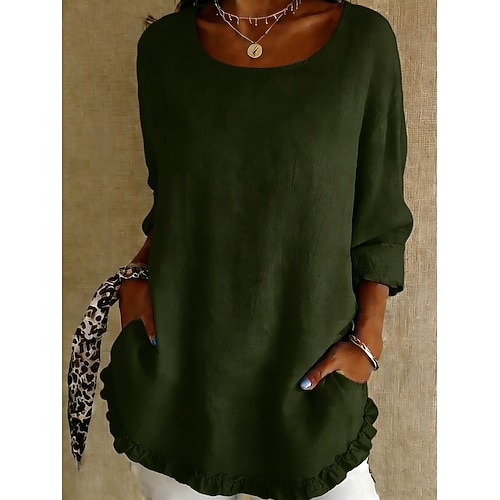 Per donna Camicia Blusa Camicia con volant Volant Semplice Elegante Classico Moderno Manica Lunga Girocollo Top Regolari Quotidiano Ferie Uscire Nero Bianco Giallo Rosa Verde militare Estate Primavera
