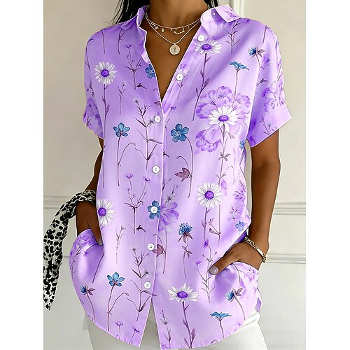Per donna Camicia Bottoni Stampato Floreale Grafico Vintage Elegante Moderno Manica Corta Colletto a Camicia Top Regolari Quotidiano Blu Giallo Rosa Viola Verde Estate Primavera