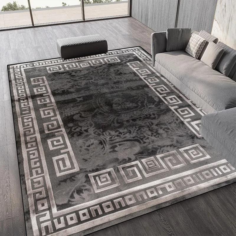 Vintage Greek Key Carpet Mat Gray Geometric Border Home Decoration Rug Classic Elegant Retro Luxury Living Room Floor Decor