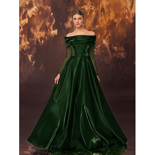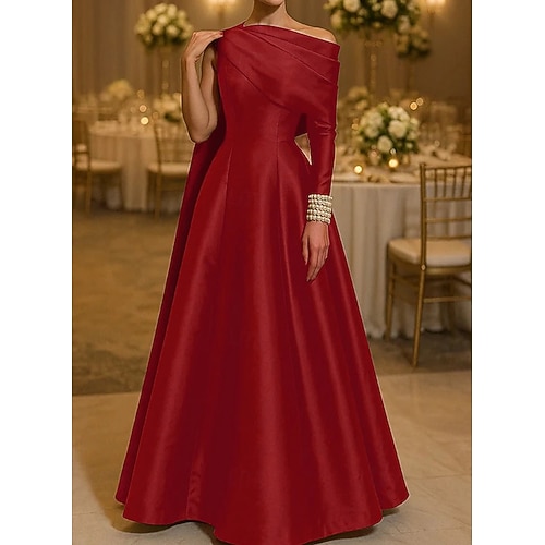 Abito da ballo Linea ad A Lunghezza al pavimento Abito da ballo con mantello Abito da Sera Abito formale Elegante Stile Celebrità Manica Lunga Senza Spalle Festa in giardino Matrimonio Raso