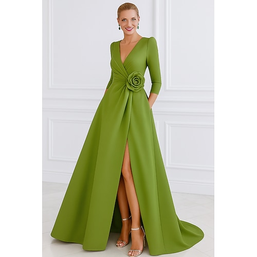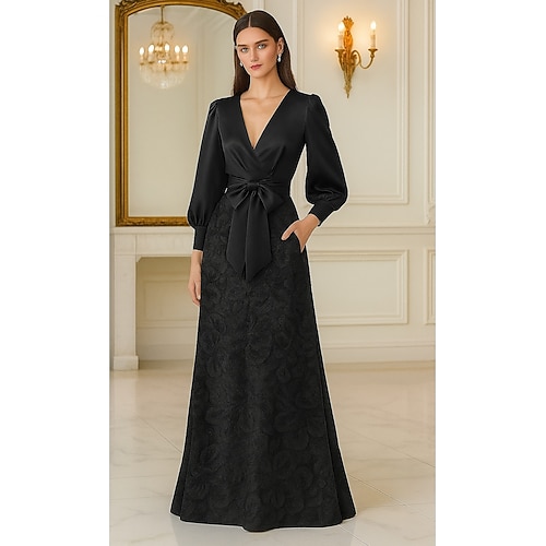 Per donna Abito da smoking Linea ad A Matrimonio Formale Ospite di nozze Raso Elegante Setoso Manica Lunga Lunghezza al pavimento coscia divisa Scollo a V