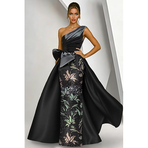 Linea ad A Lunghezza al pavimento Abiti da Ballo Abito da Sera Stile Celebrità Senza Maniche Monospalla Balli di fine anno Formale Organza con Arricciato Volant Spacco