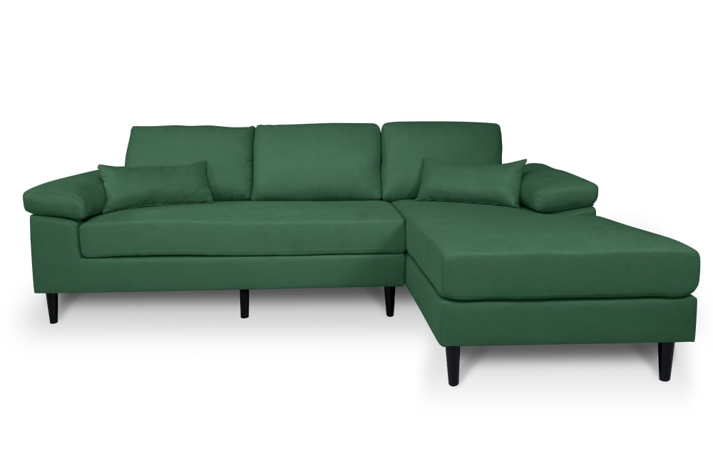 Divano angolare 3 posti in tessuto verde abete chaise longue destra