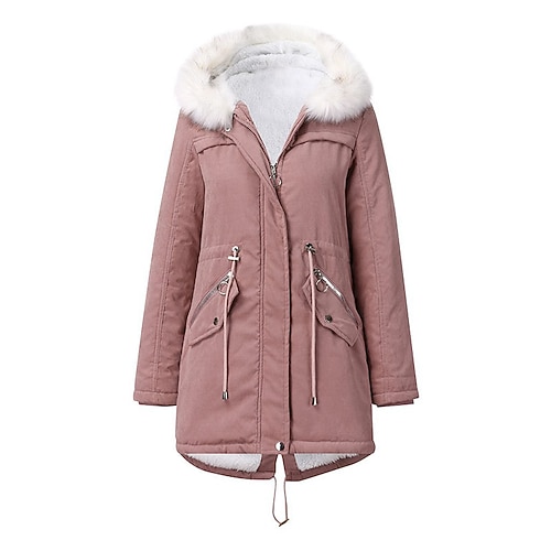 Per donna Cappotto Invernale Parka Caldo Confortevole Bordo in pelliccia Cerniera Tasca Con cintura Casual Tinta unica Vacanza Streetwear Abbigliamento quotidiano Uscire Regolare Con Cappuccio