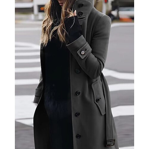 Per donna Trench Confortevole Traspirante Bottoni Con cintura Casual Semplice Vacanza Streetwear Casuale Abbigliamento quotidiano Monopetto Lungo Collo ripiegato Vestibilità regolare Manica Lunga