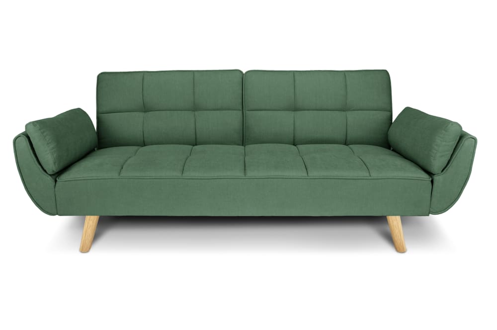 Divano letto clic clac in tessuto vellutato verde abete piede naturale