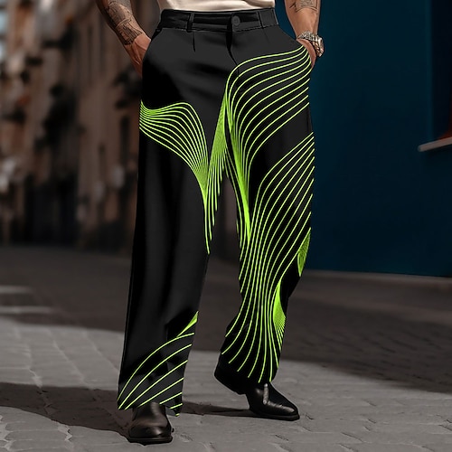 Per uomo Geometrico Sfumatura Onde Pantaloni Eleganti Pantaloni Pantaloni da Abito Misura del girovita medio Casual Abbigliamento Quotidiano Ferie Pantaloni eleganti con vestibilità comoda e tasche