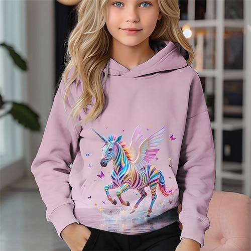 Ragazze 3D Unicorno Felpa con Cappuccio Manica Lunga Autunno Inverno Moda Adorabile Essenziale Bambini 4-12 Anni Con cappuccio All'aperto Casuale Quotidiano Vestibilità regolare
