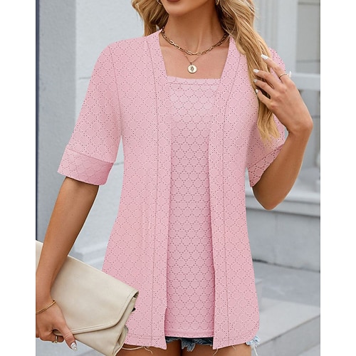 Per donna Blusa Semplice Casual Manica Corta Girocollo Top Regolari Quotidiano Uscire Patchwork Nero Rosa Estate Primavera Autunno