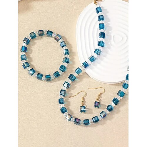 set di gioielli da donna con perline di cristallo rosso per la festa di Natale, collana elegante, braccialetto set di orecchini pendenti per feste ed eventi formali