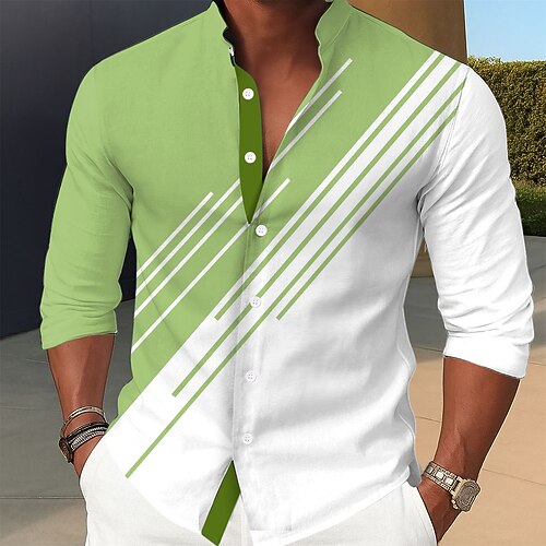 Per uomo Geometrico Sfumatura Linea Camicia Camicia con colletto alla coreana Camicia casual Manica Lunga Business Casual Vacanza Casa Quotidiano Estate Primavera Collo alla coreana Colletto alla