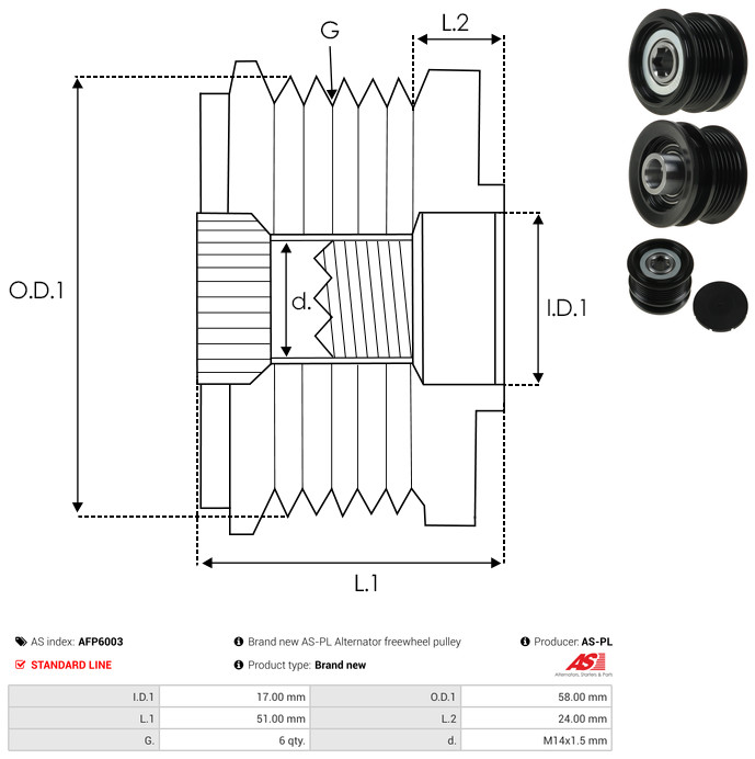 AS-PL Generatorfreilauf AFP0101S für MERCEDES-BENZ NISSAN A2741550315 2741550215 2741550315
