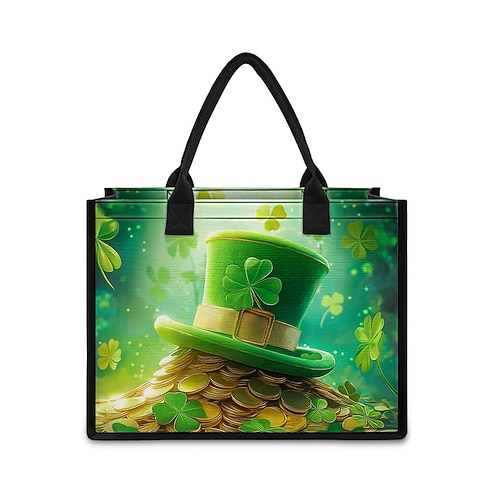 borsa tote da donna per il giorno di San Patrizio: diversi modelli, grande capacità, materiale stampato in poliestere, perfetta per le celebrazioni festive