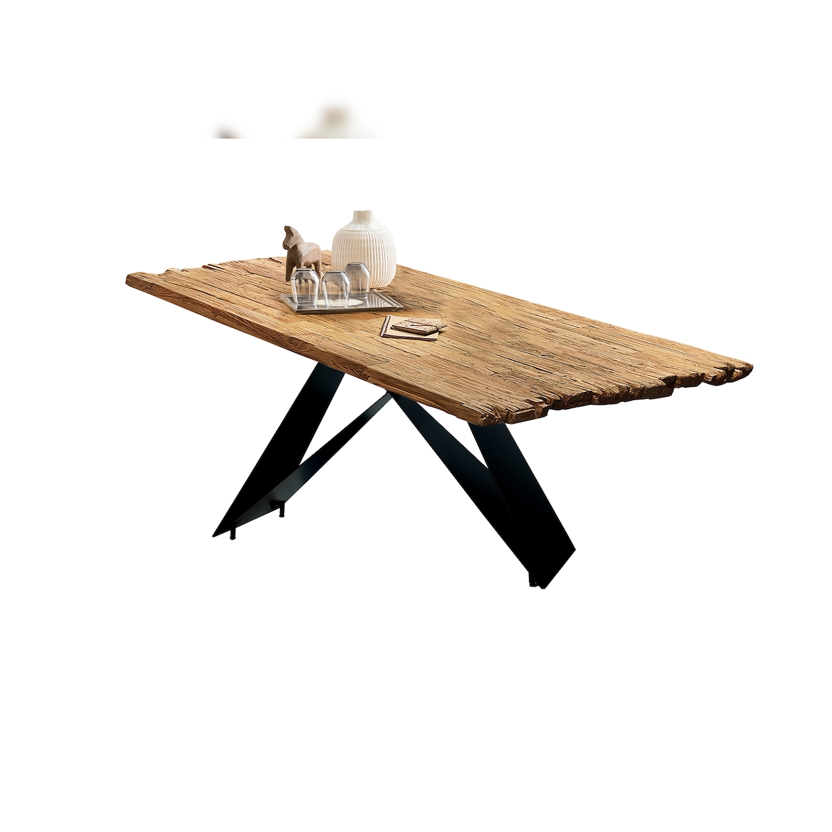 SIT Möbel Esstisch 220 x 100 x 76 cm | Tischplatte 40 mm | Wildeiche natur | X-Gestell Metall antikbraun | 15882-00 | Serie TABLES & CO