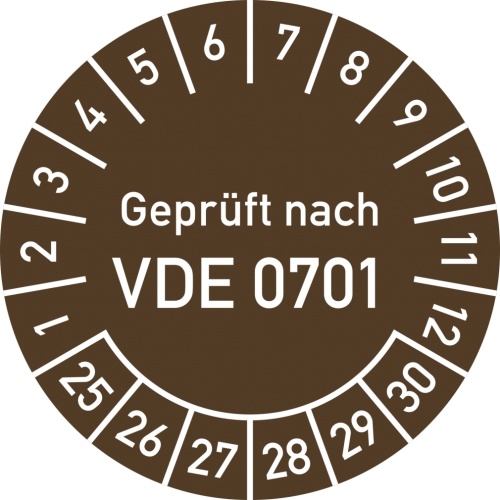 Dreifke® Prüfplakette Geprüft nach VDE 0701, 2025-2030, Dokumentenf., Ø 30mm, 10 Stück/Bogen