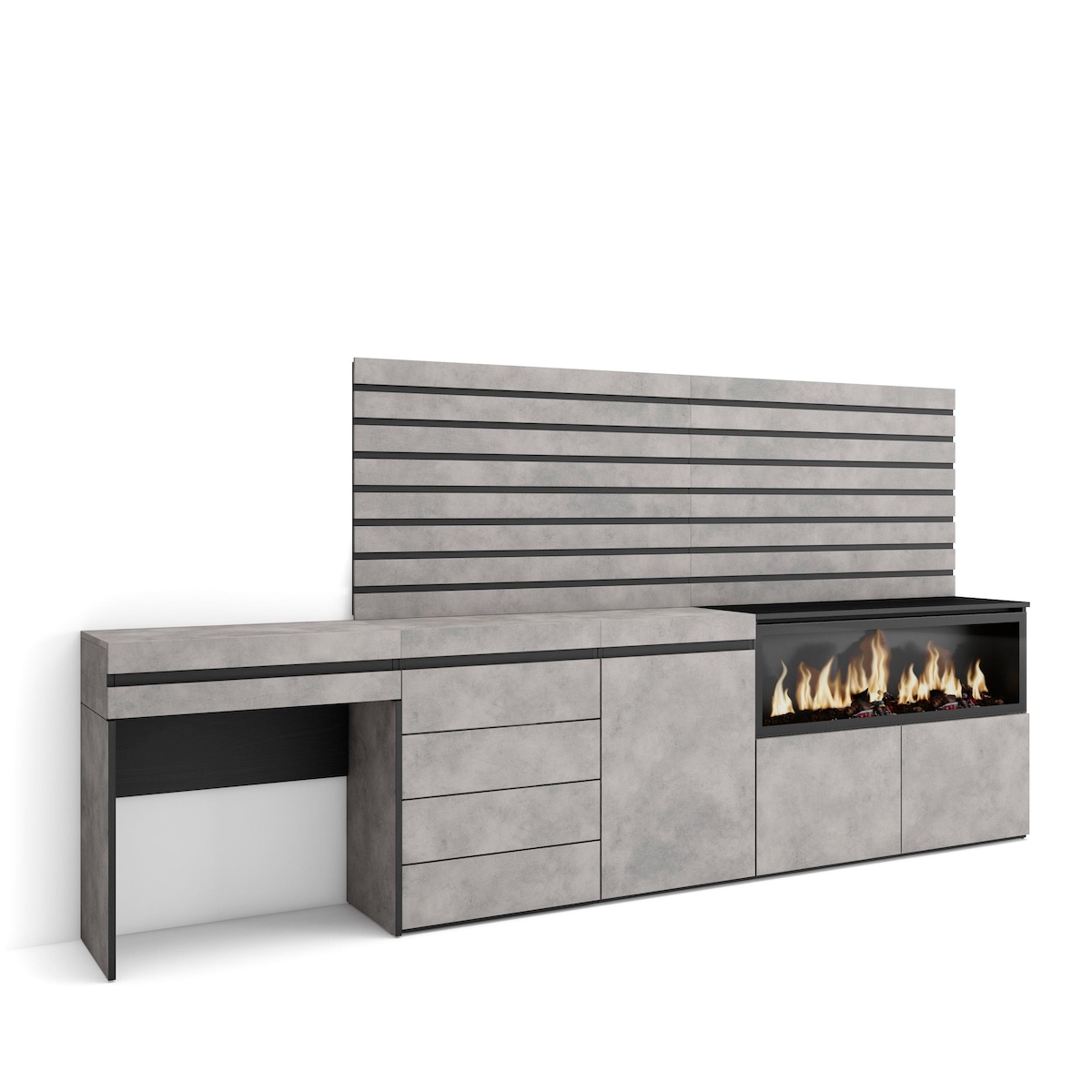 SKRAUT HOME Frisiertisch, Schminktisch, Ablage, 284x35x145 cm, Mit Schublade, Elektrokamin XXL, Kommode, Dekorplatten, Zementgrau _ 454_64