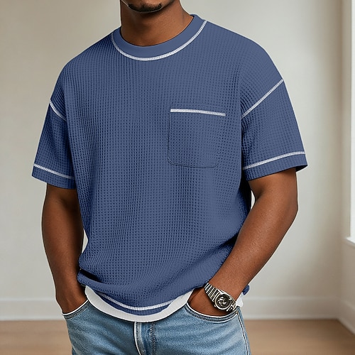 Da uomo Maglia Henley a nido d'ape Maglietta Manica Corta Girocollo Henley Estate Tinta unica Vintage Quotidiano Casual Tasca Casuale Quotidiano All'aperto Blu chiaro Nero Verde chiaro Maglietta Top