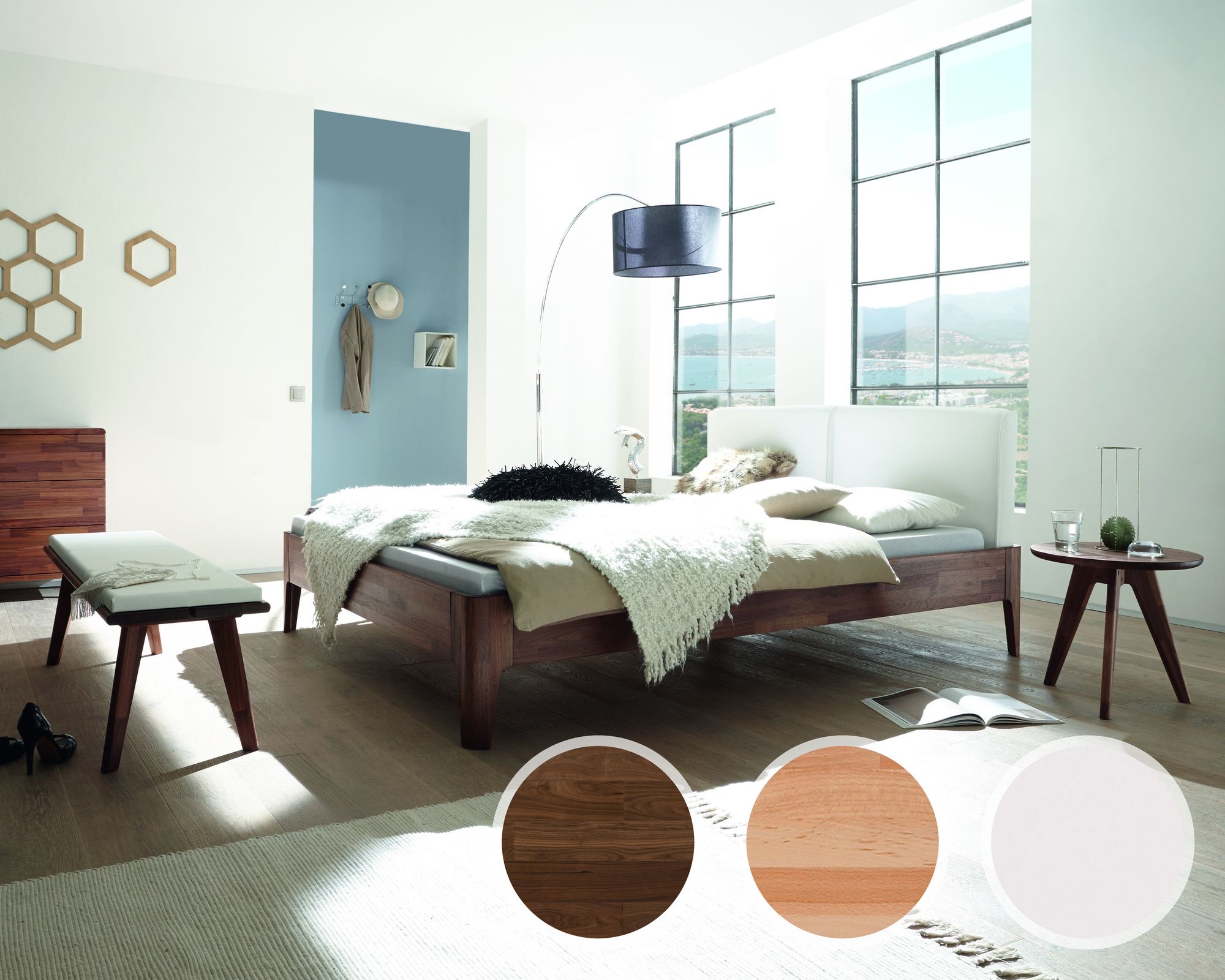 Hasena Fine-Line Massivholzbett Syma Syko/Gabo 160x220 cm / Nussbaum, geölt