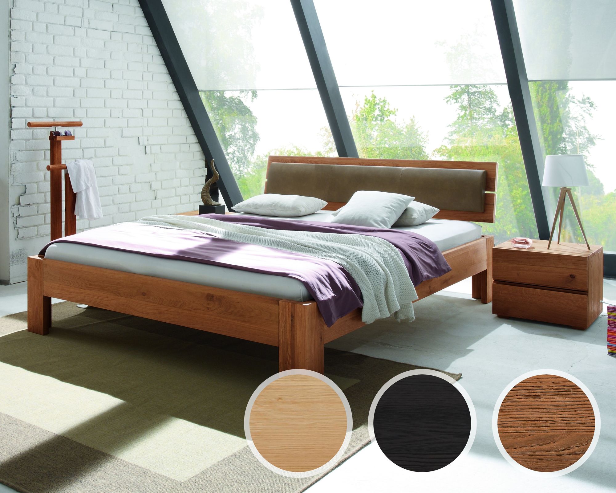 BlackWood »Nova Vita Contour IV« Wildeiche Massivholzbett 200x200 cm / Wildeiche rustic / Boucle Off-White