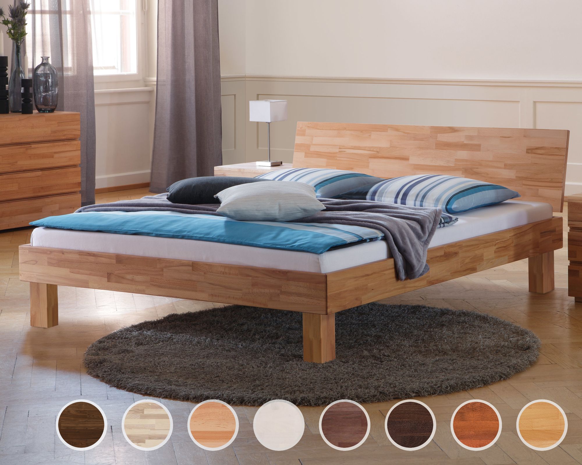 Erst-Holz Doppelbett Buche natur Massivholzbett lackiert 180x200 Futonbett Zubehör wählbar V-60.80-18 Federleisten