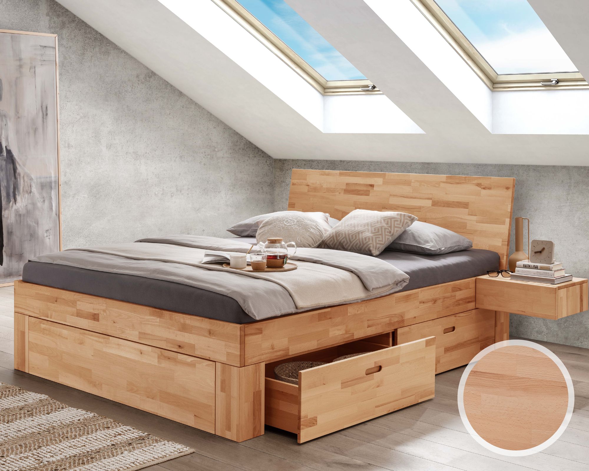 Hasena Wood-Line Massivholzbett Ivio/Lecco 200x200 cm Buche natur