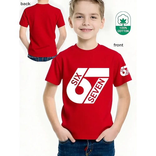 Cotone Bambini Ragazzi Nero Bianco Grafico Gergo divertente 67 Maglietta Blusa Girocollo Manica Corta All'aperto Abbigliamento Quotidiano Moda Streetwear Designer Stampa Estate