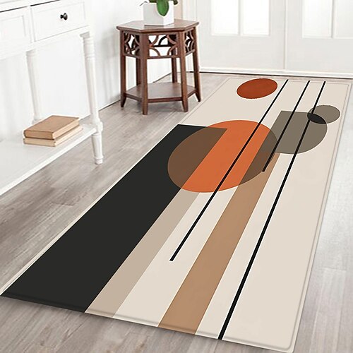 tappeto da corridoio con motivo geometrico semplificato, tessuto di flanella stampato, tappetino per ingresso, tappetino per bagno, materasso, tappeto morbido