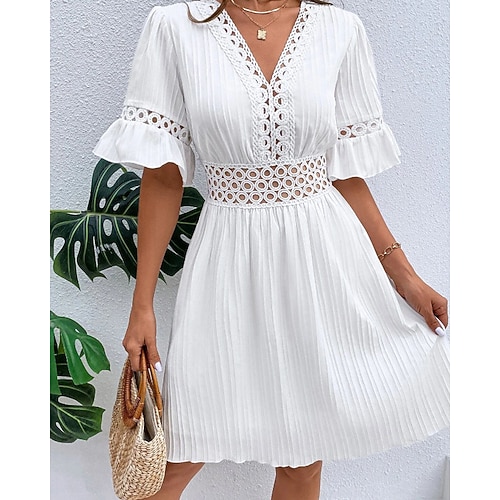 San Valentino Per donna Normale Mini abito Abiti Boho Chic Abito linea A Boemia Moda Classico Manica a lanterna Da mare Feste Giornaliero Adattabile Liscio Senza maniche Squadrata Nero Bianco Rosa