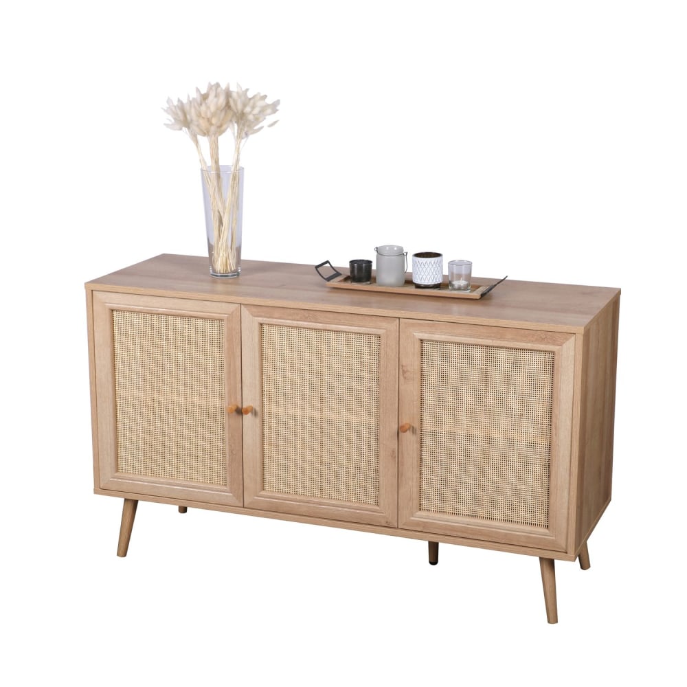 Buffet 3 portes en cannage et effet bois