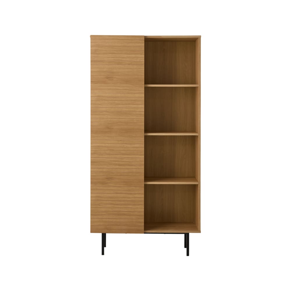 Buffet haut 1 porte effet bois clair et pieds en métal noir
