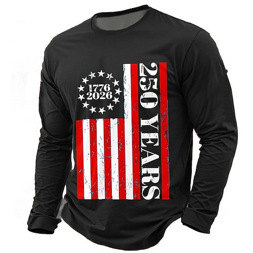 250° anniversario dell'America Per uomo 250° anniversario degli Stati Uniti Maglietta Manica Lunga maglietta Stampa 3D Girocollo Camicia Quotidiano Casual Quotidiano Viaggio Feste Blu Nero Rosso